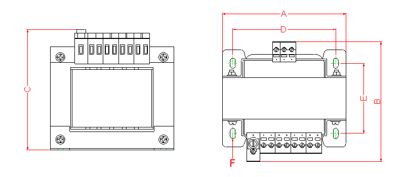 功率/VA | A | B | C | D | E | F | 重量/kg |